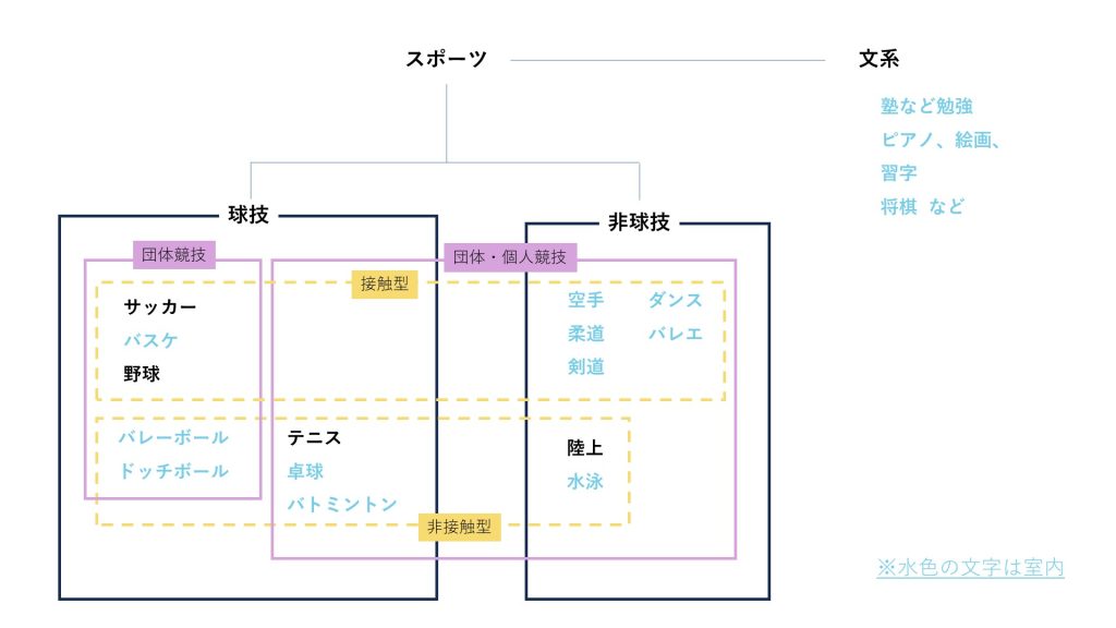 もちろんまだまだあると思いますし、ざっくりとしたものになります。習い事を考えるときに使用していただければと思います。