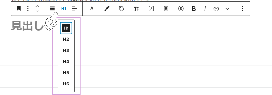 見出しを作成するときに「H1」を選択すると画像のようにH1~H6が出てくると思います。