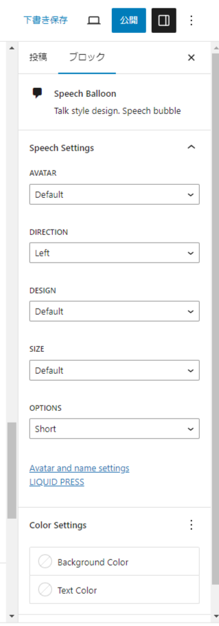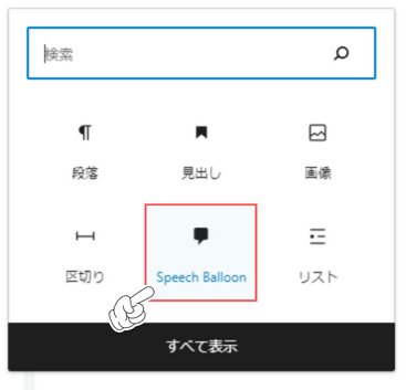 有効にした後はブロック内にLIQUID SPEECH BALLOONが出てくるかと思います(ない場合は全て表示にしないと出てきていないだけかもしれないです)